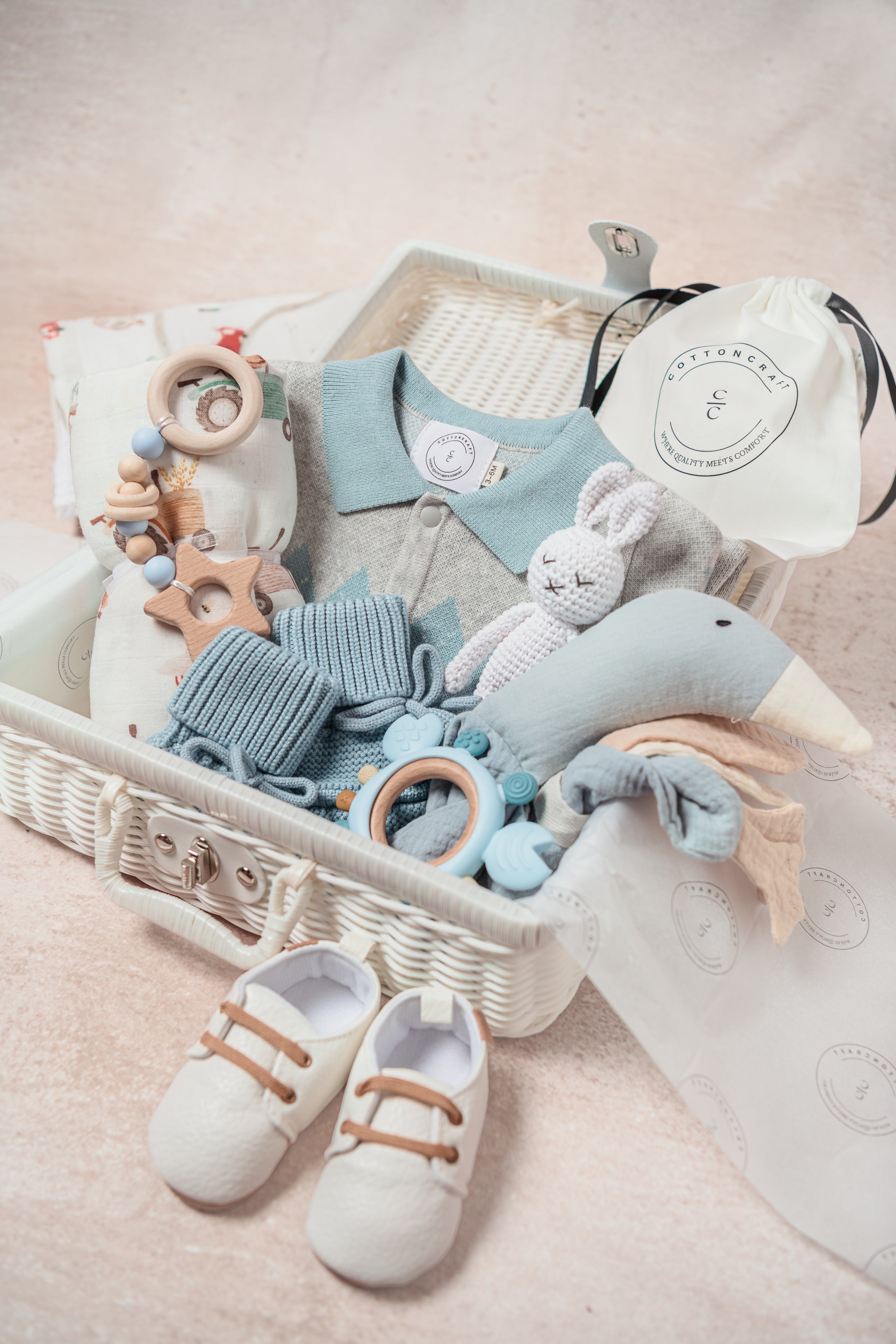 Available in three timeless color options – Blush Pink, Sky Blue, and Sage Green (gender-neutral) – this bundle is packed with high-quality, full-size essentials that support rest, bonding, and self-care.